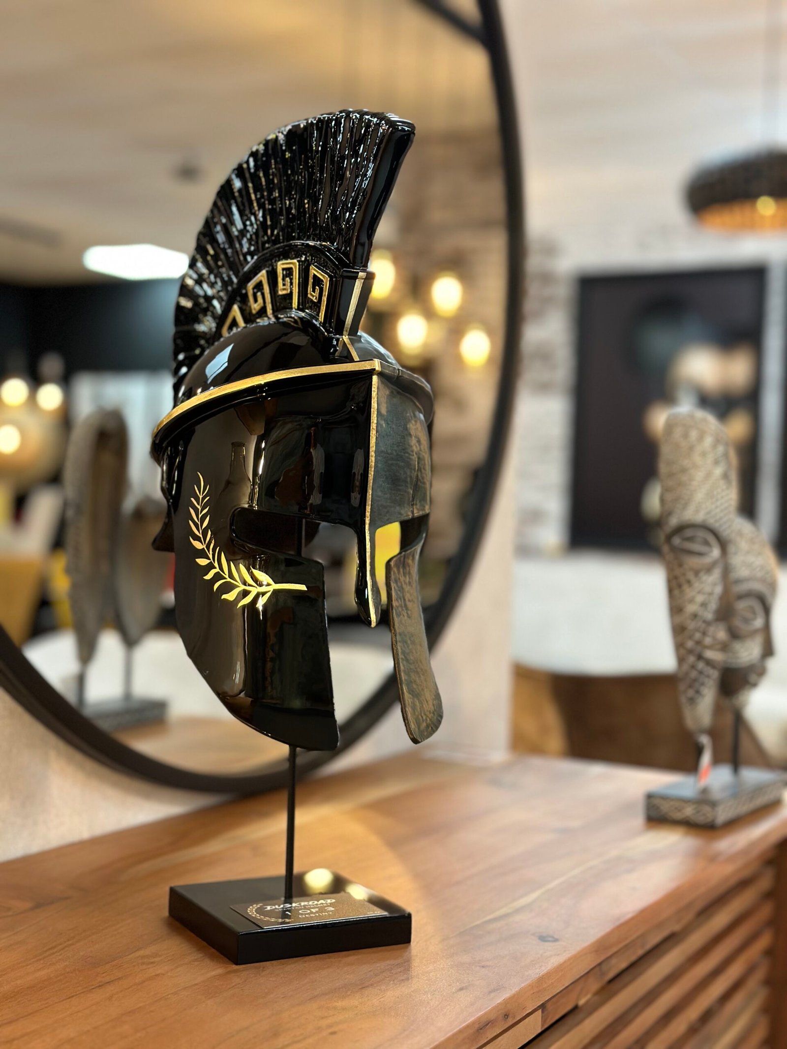 • Ce casque spartiate, forgé par le forgeron Theron avec un matériau mystérieux et une magie protectrice, fut volé par un sorcier sombre pour lever une armée. Refusant de servir le mal, il revint à son créateur pour protéger la Grèce. Restauré en 2023, il symbolise la magie et l’artisanat d’une légende antique.